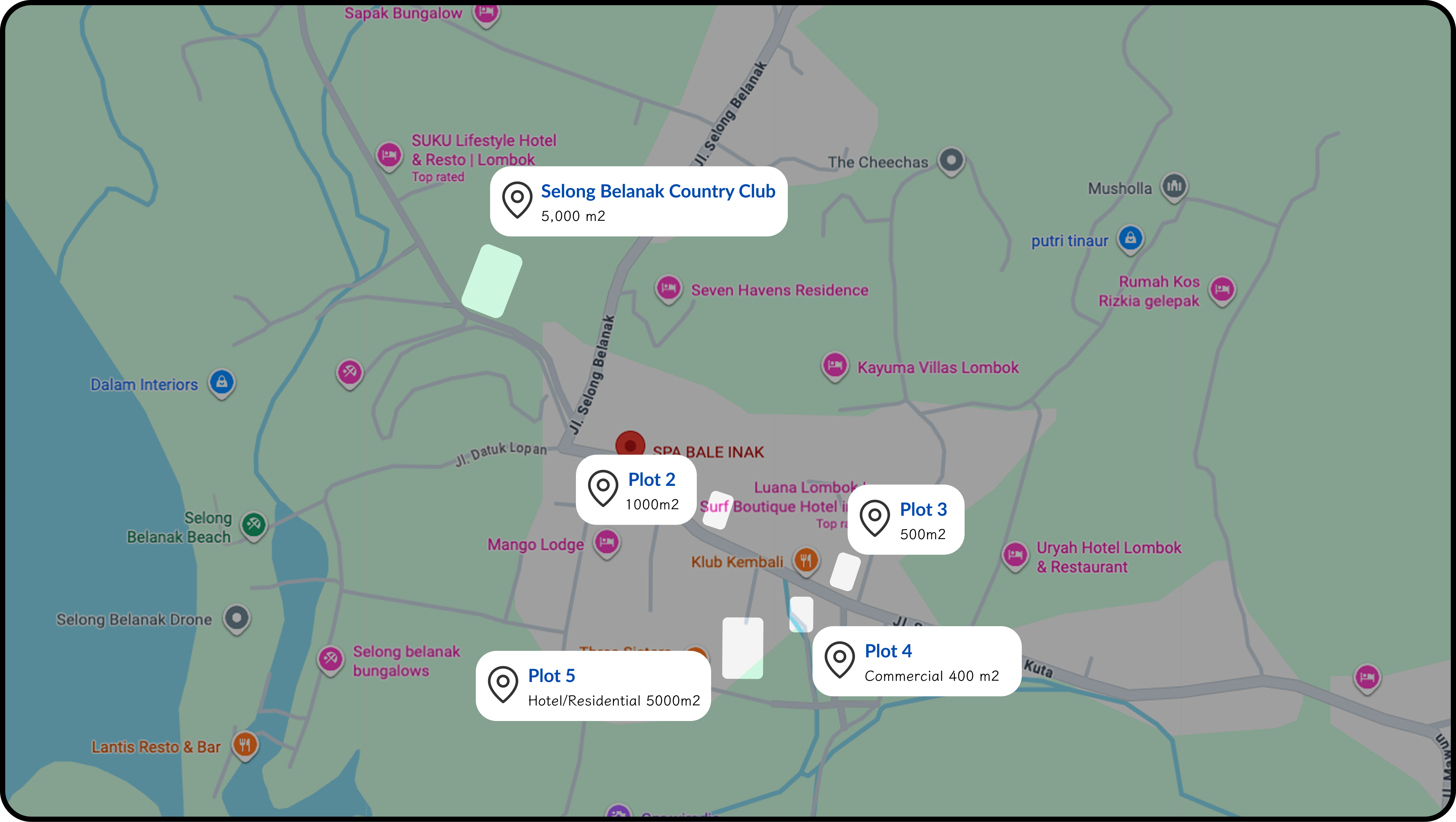 Our developments are located on Lombok’s pristine south coast — white sand, blue water, world-class surfing, perfect swimming. Unspoilt by mass tourism.